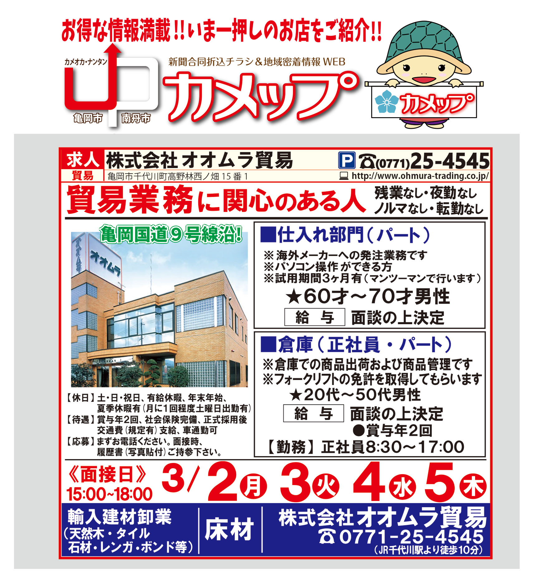■新聞折り込みエリア:亀岡市・南丹市・京丹波町・洛西